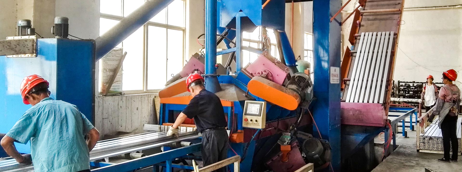 專業(yè)生產(chǎn)多種鋁合金型材及制品的企業(yè),已有二十多年的經(jīng)驗和歷史。現(xiàn)有鋁型材擠壓設(shè)備四套,分別為1800T、1000T、630T、600T擠壓生產(chǎn)配套設(shè)備有10m長不銹拋丸機(jī)。6m鋁型材表面拋光機(jī),4.5m普拉迪鋁材加工中心,多臺高精度自動切割機(jī),雙頭轉(zhuǎn)向切割機(jī),備有12m長時效爐。